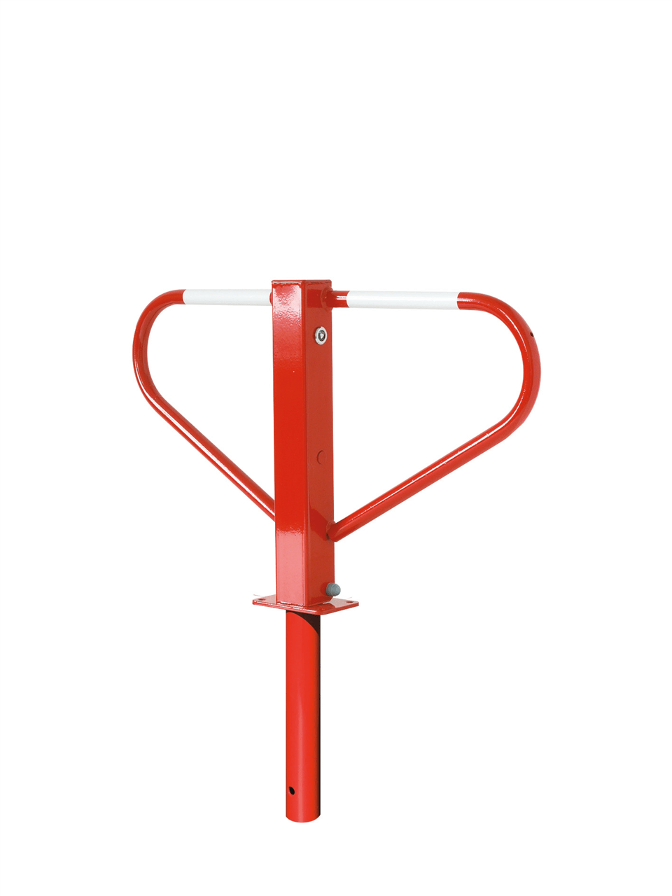 Nedleggbar parkeringssperre med rund låssylinder eller trekantlås, med smekklås for loddrettstående stilling.