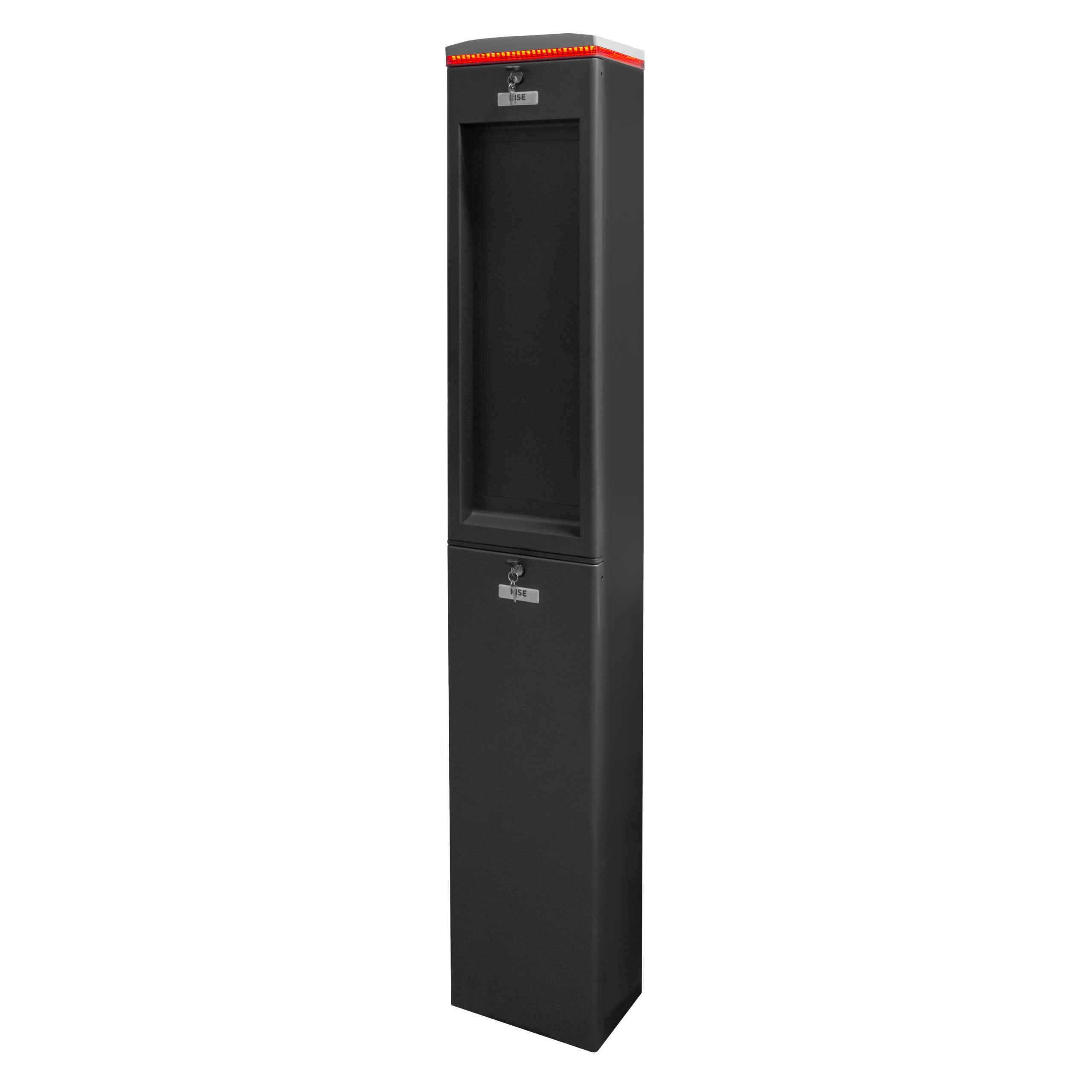 Komplett stolpe for kontrollenhet bestående av en DOMUS CP-modul, som inneholder 2 styreenheter og en øvre modul med tilbehørspanel.