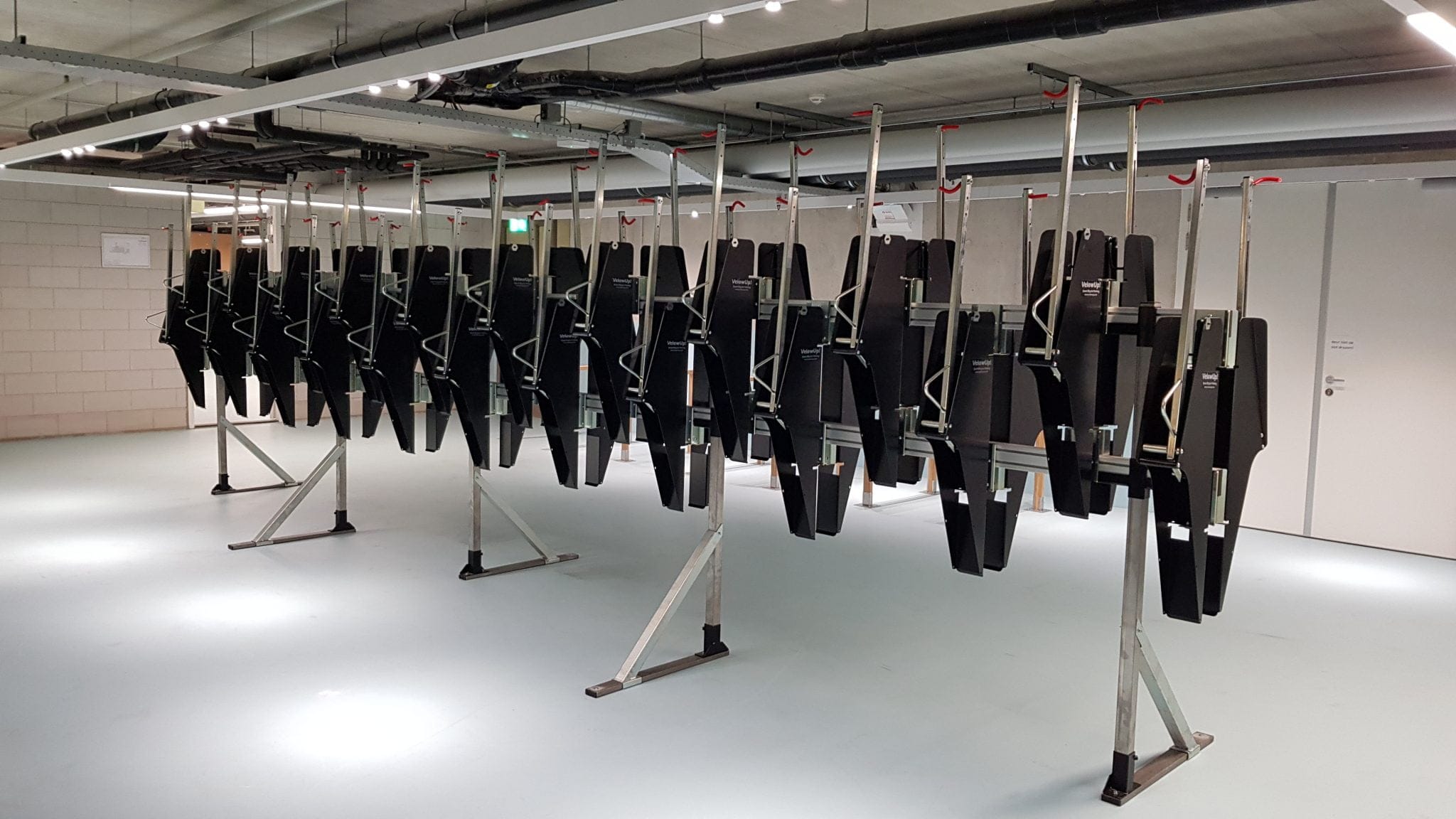 Parkering VelowUp! ® gir en plassbesparelse på over 40% sammenlignet med standard horisontale sykkel parkeringssystemer.