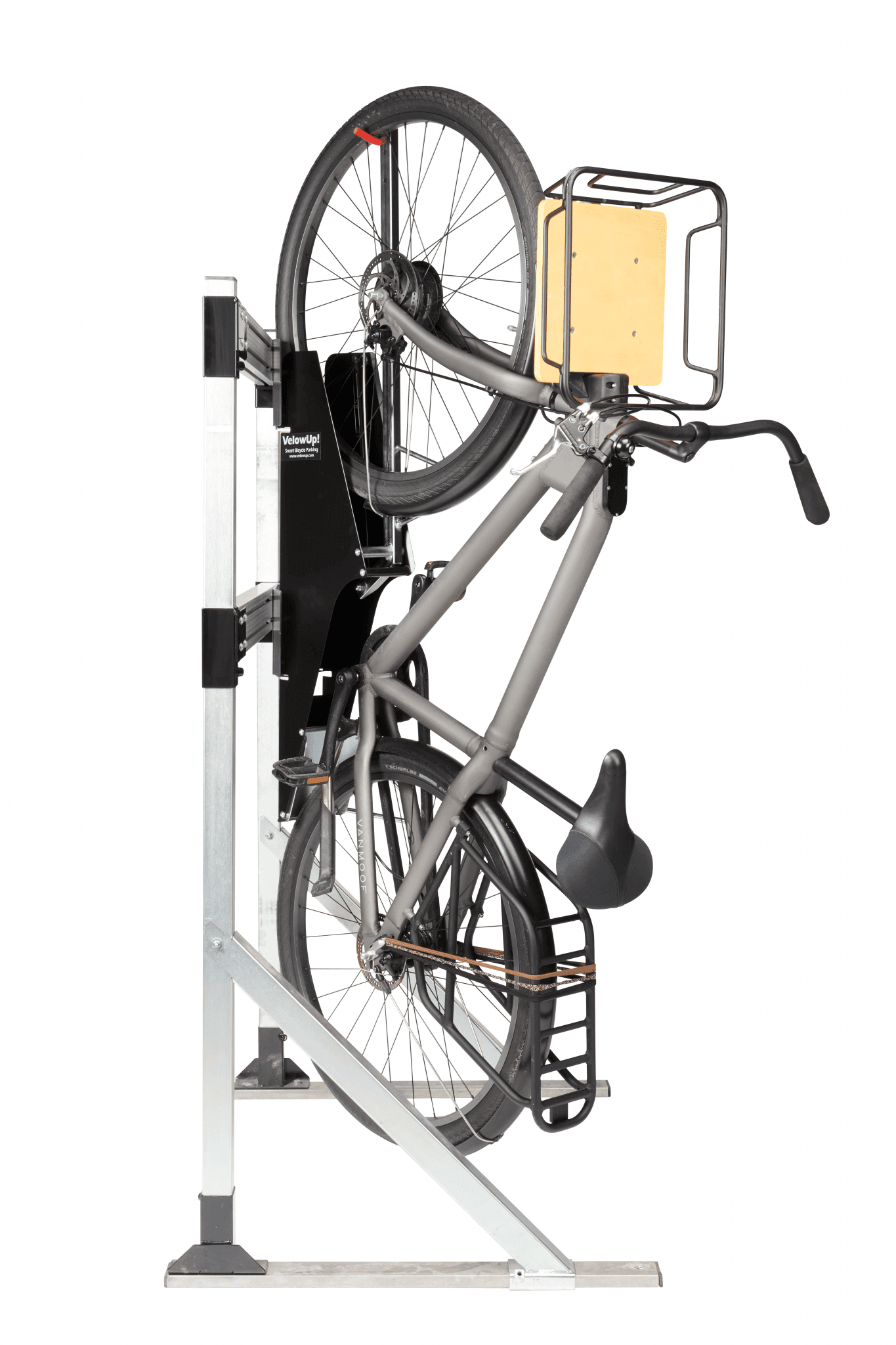Med VelowUp! ® kan du henge en sykkel vertikalt fra forhjulet. Det unike mekanisme, VelowUp! ® hjelper deg å enkelt parkere sykkelen vertikal uten at det blir for tungt.