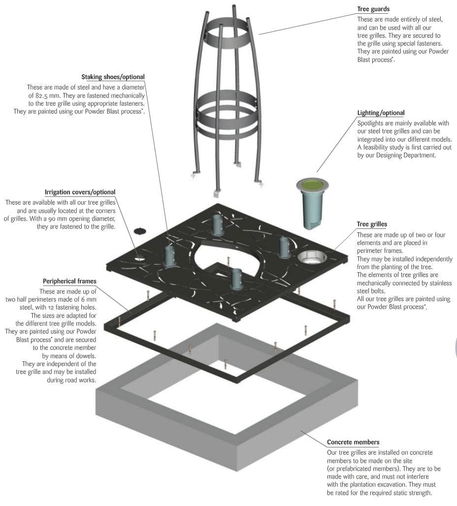 Stålristen er sveiset til ikke synlig understell som gir tregruberisten den nødvendige stabilitet og styrke.